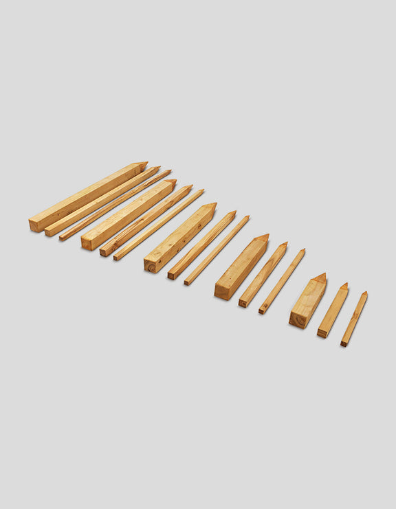Les piquets sont sciés sur leurs quatre faces et laissés avec une finition brute de sciage.